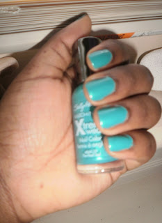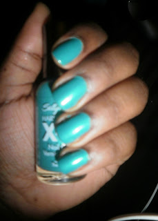 Lately I've been into painting my nails in bright colors and the most recent shades have all been some sort of green. Its the holidays and so began the hoarding of multiple shades of green nail polishes!! The first one I'll be showing is from Sally Hansen's Xtreme wear nail color line in "The Real Teal". As the name implies its supposed to be a teal color but in different light it sometimes looks green or even more blue. Either way I love it and its festive. The formula for this line of polishes is great btw; not thin and not too thick and awesome pigmentation and I'll continue to buy from this particular Hard as Nails section.